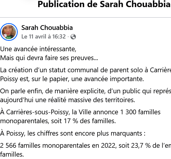 La création d’un statut communal de parent solo à Carrières-sous-Poissy est, sur le papier, une avancée importante.